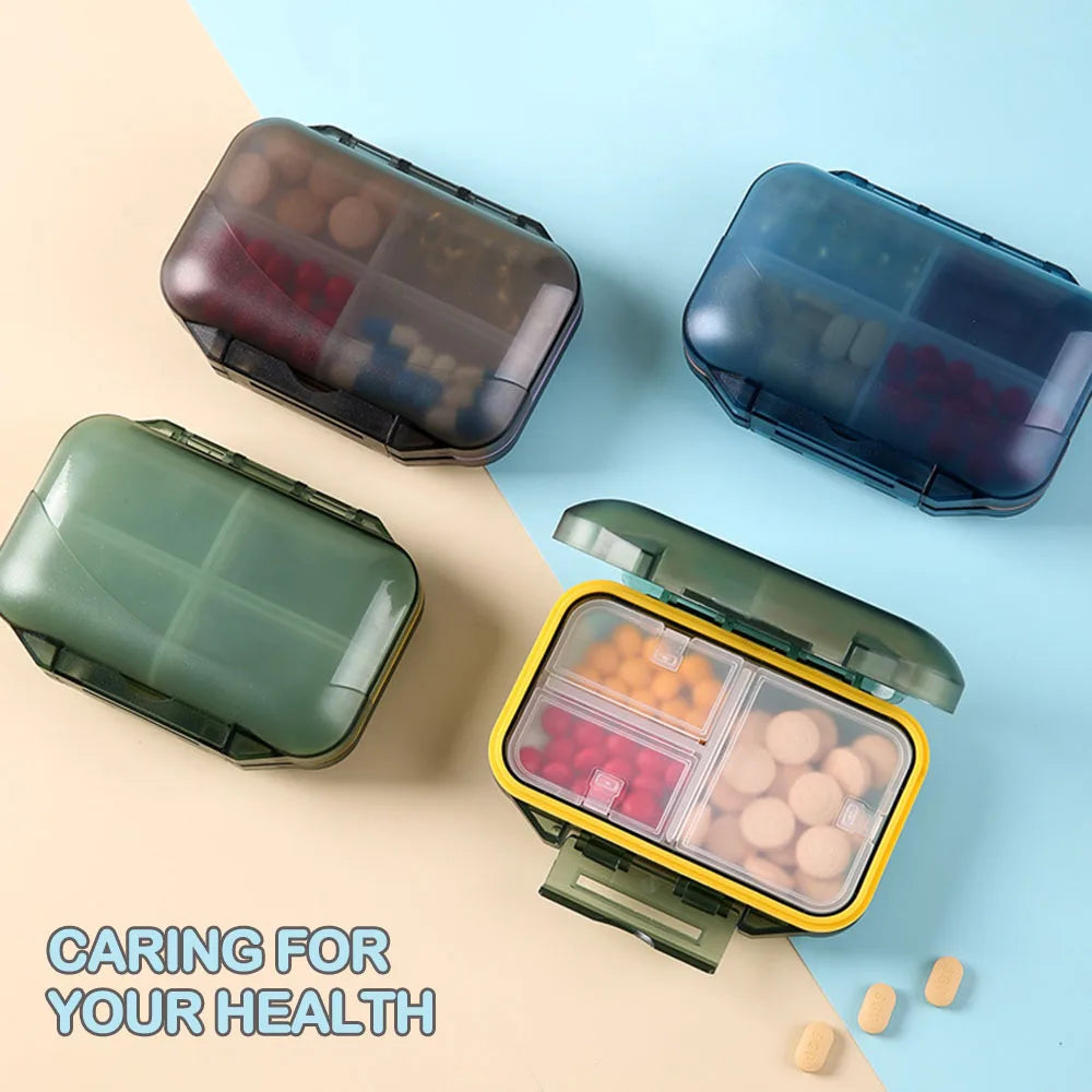 Sete compartimentos organizados (7 Grid) para separar diferentes medicamentos sem misturar.
