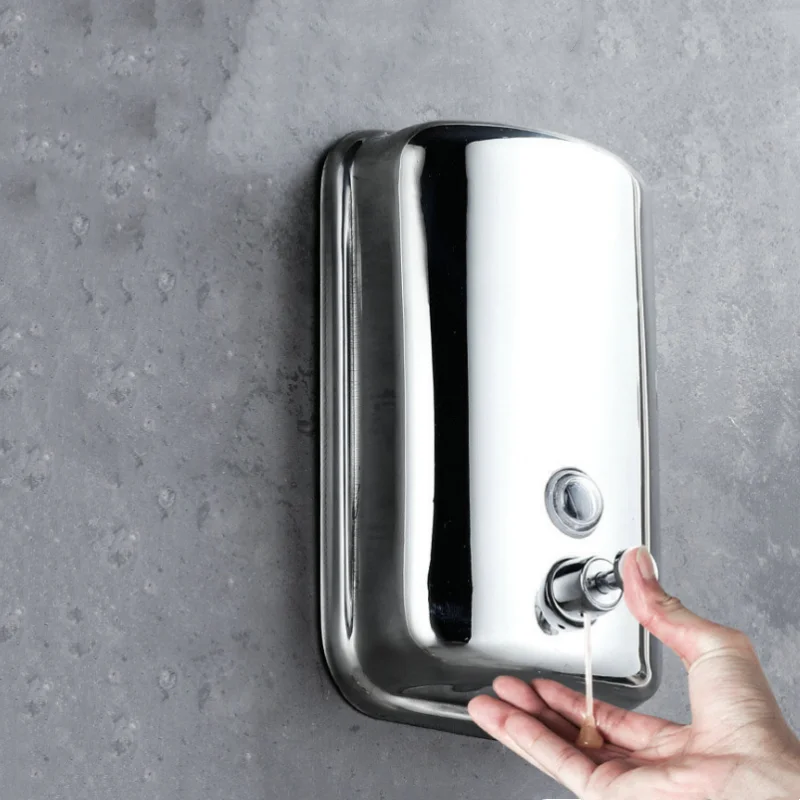 Dispenser de Sabonete Líquido para Banheiro em Metal é um dispenser de parede em aço inoxidável, ideal para banheiros modernos que valorizam durabilidade e praticidade. Com capacidade de 500 ml e acionamento manual, oferece uma solução limpa, organizada e com estilo.