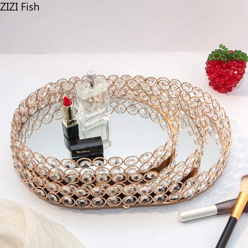 A Bandeja Espelho de Cristal Dourado é a solução elegante para organizar joias e itens de beleza com um toque de luxo discreto. Ideal para penteadeiras, mesas de escritório ou sala de estar, alia função e estilo sem exageros.