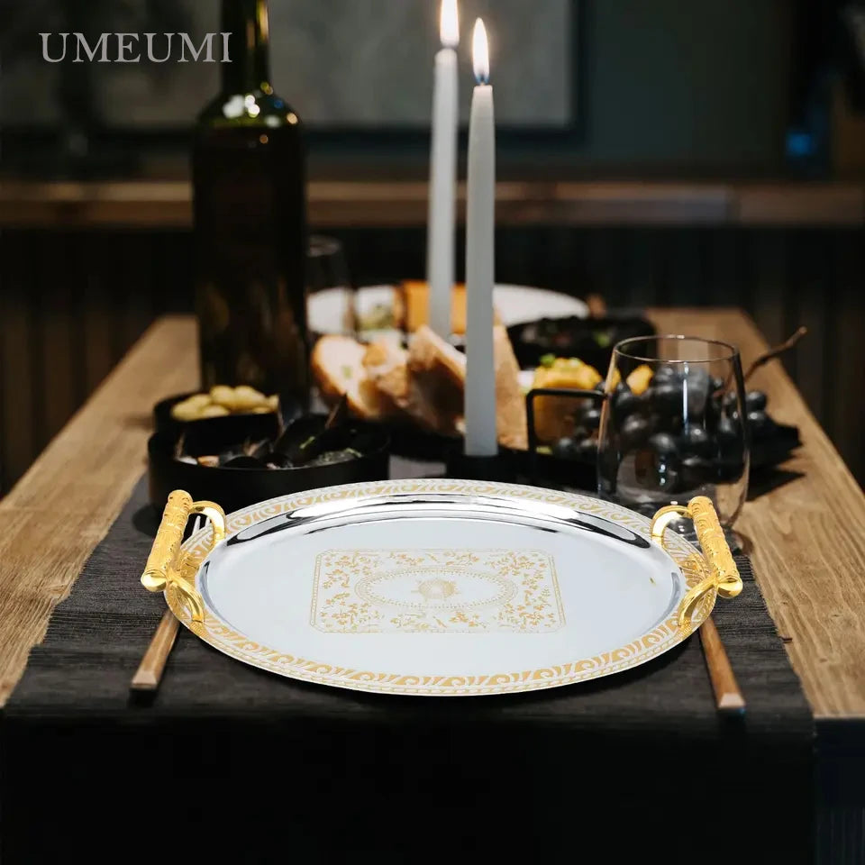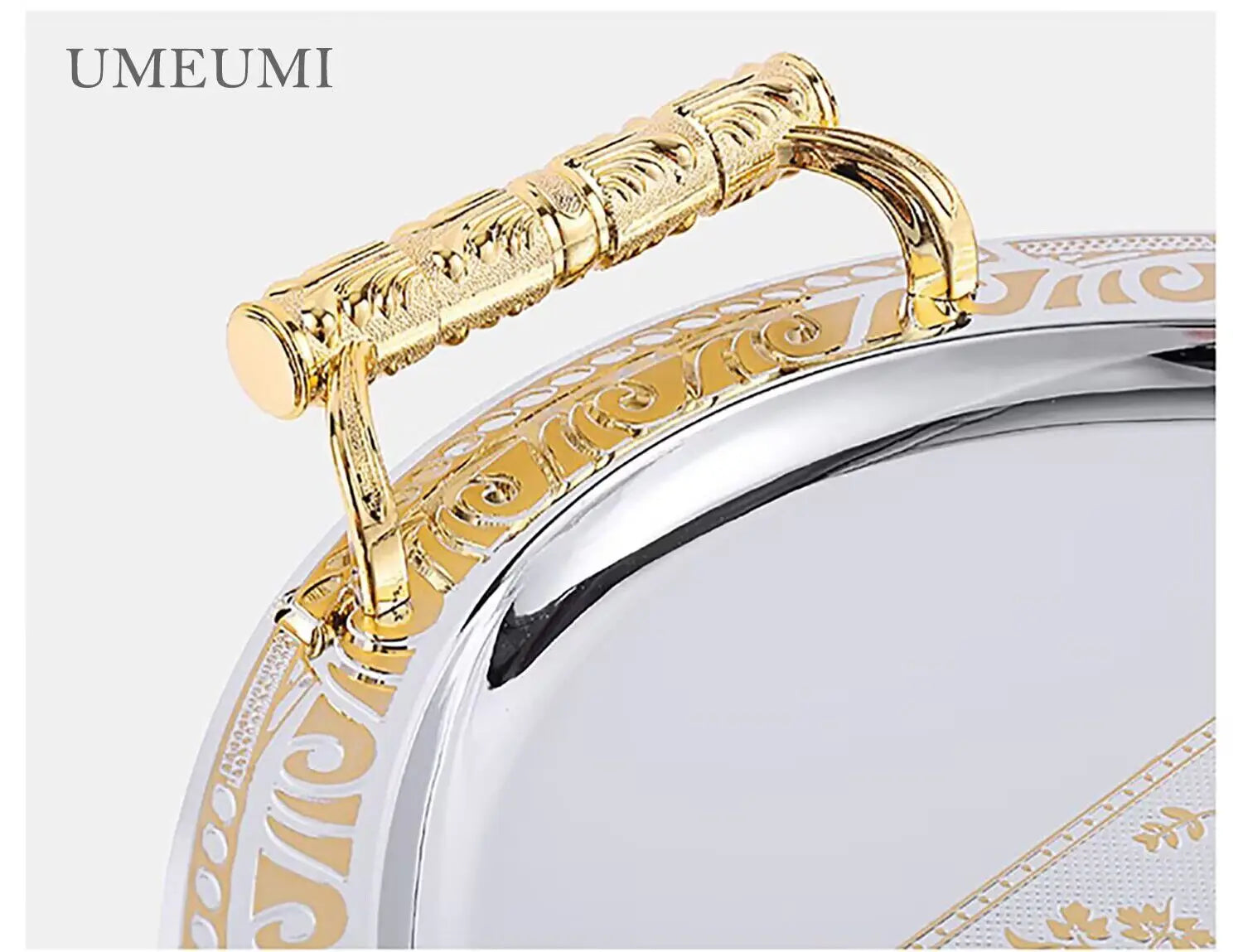 A Bandeja Dourada em Metal para Chá com Alça é a opção ideal para quem busca elegância prática em casa: perfeita para servir chá, café, bolos e bebidas, além de funcionar como peça decorativa para manter a bancada organizada em reuniões e eventos.