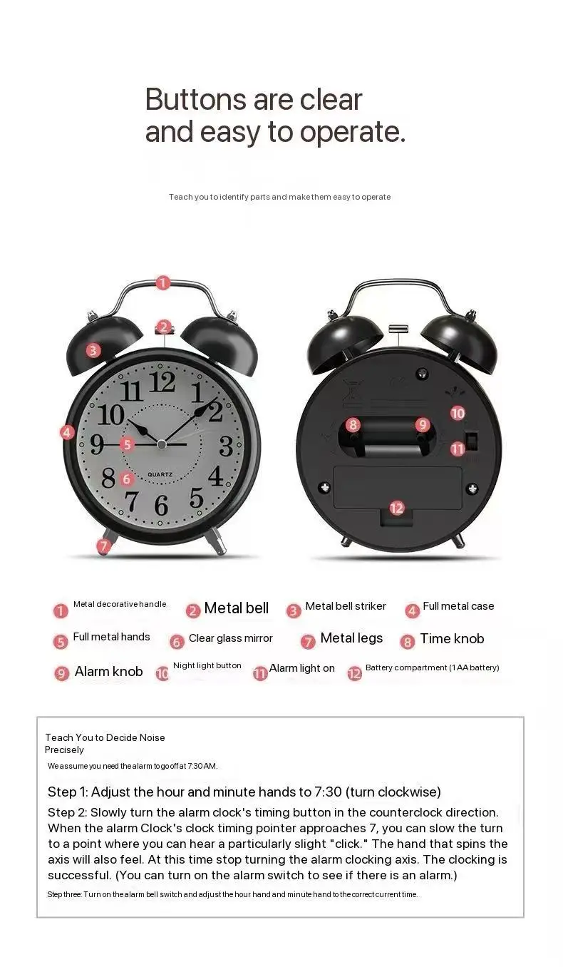 Beneficia quem precisa acordar para as aulas com precisão, sem abrir mão de uma estética elegante. A iluminação de fundo facilita ver as horas em ambientes com pouca luz, sem atrapalhar o sono. A bateria inclusa oferece confiabilidade adicional, mantendo o relógio funcionando mesmo sem tomadas constantes. O design de estilo clássico combina com qualquer espaço de estudo, oferecendo uma peça funcional e com charme vintage.