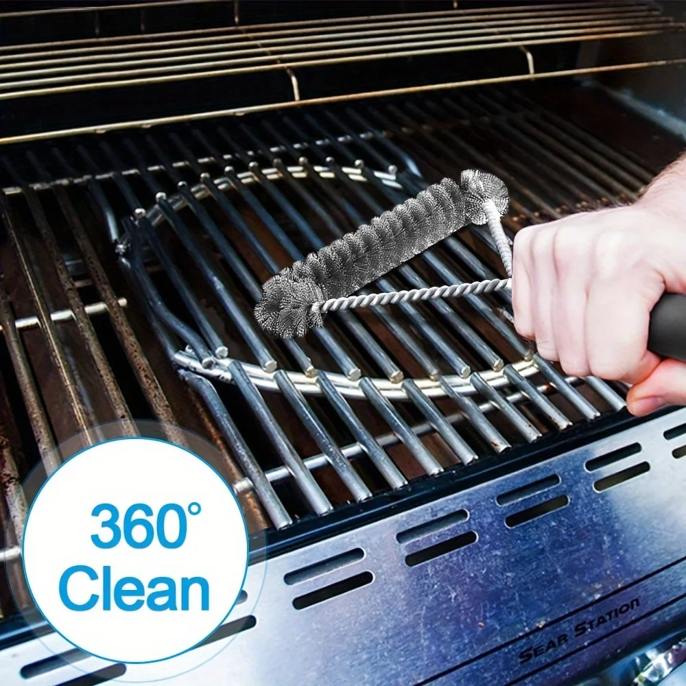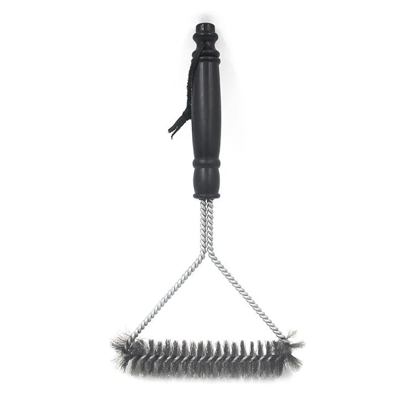 Escova de churrasco em fio de aço inoxidável profissional, criada para limpar grelhas com eficiência em casa ou em ambientes de cozinha que exigem desempenho confiável.