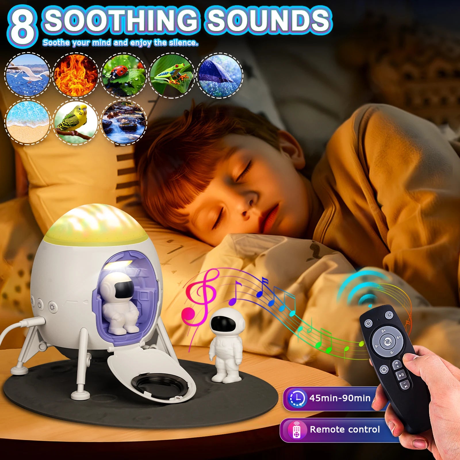 - Aparência de lander espacial com tampa superior que pode abrir para projeção de estrelas e fechar para funcionar como luz noturna.