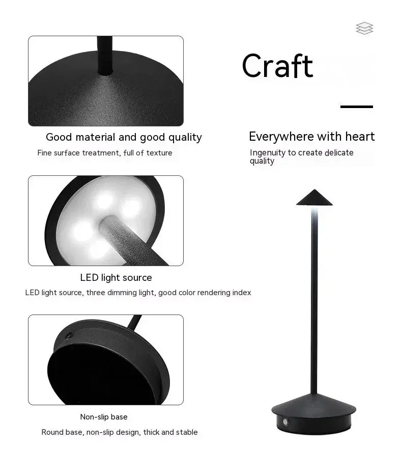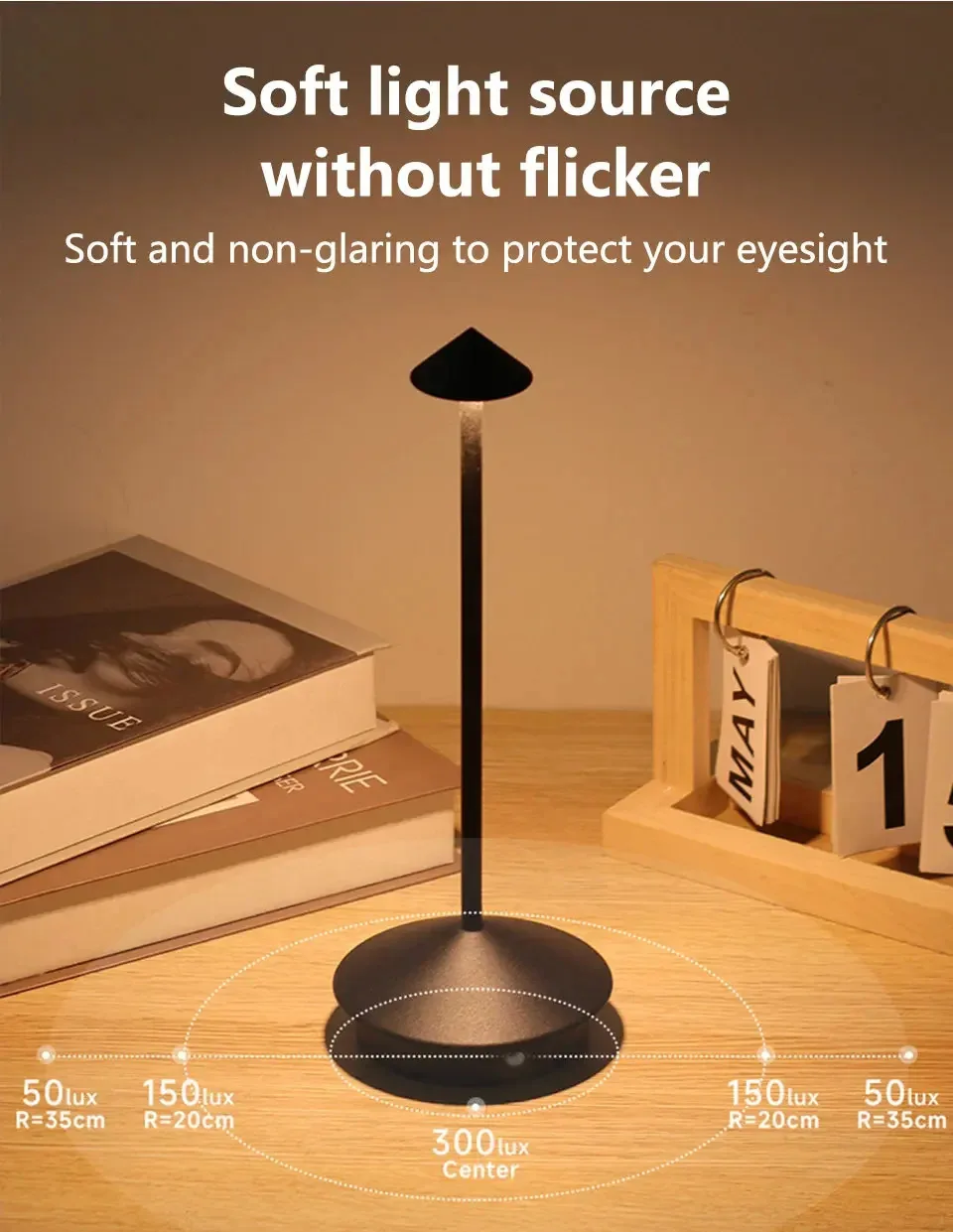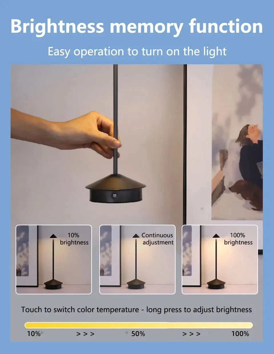 A Lâmpada Noturna LED Regulável para Quarto USB oferece iluminação suave com controle tátil, ideal para quarto, ambiente de estudo ou escritório. Com três temperaturas de cor e carregamento USB-C, é prática, elegante e fácil de adaptar ao momento do dia.