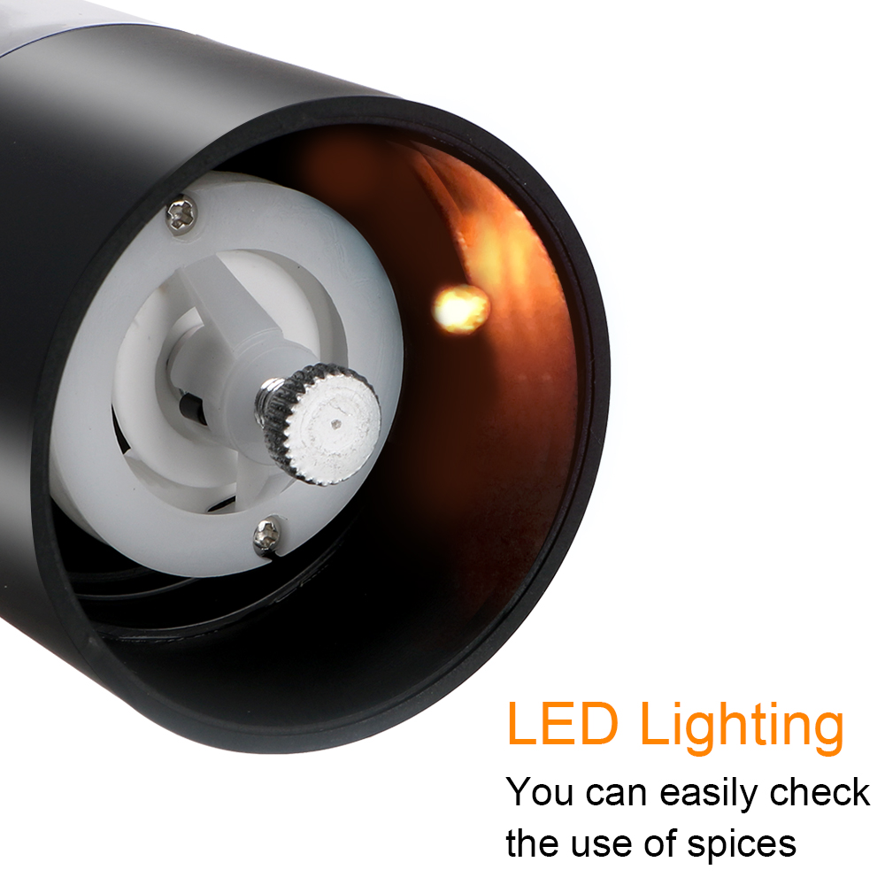 Descubra o Moedor Elétrico de Especiarias para Cozinha com LED — a solução prática para moer sal, pimenta e temperos na hora, com um toque de estilo para cozinhas modernas. Ideal para uso doméstico, ele oferece moagem rápida e iluminação que facilita obter o ponto ideal de tempero.