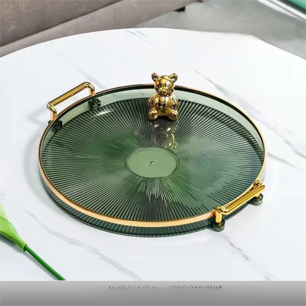 Bandeja de Armazenamento Redonda Multifuncional para Mesa Ouro é a solução prática para organização diária, combinando simplicidade com um toque de elegância. Ideal para quem busca manter a mesa arrumada sem perder estilo, disponível em cores que vão do neutro ao sofisticado ouro.