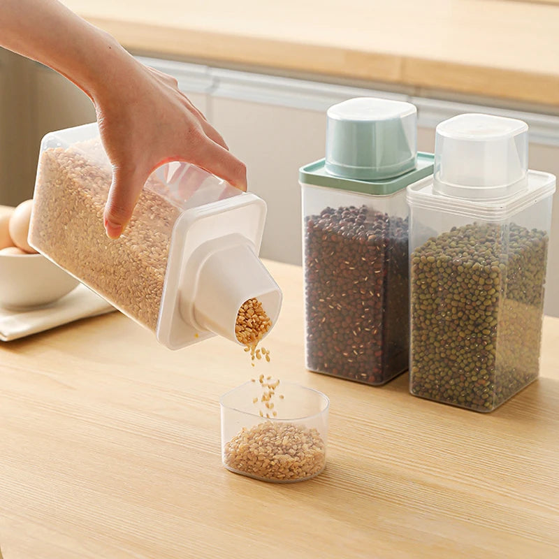 Recipiente Hermético para Cereais com Copo Medidor Transparente é a solução prática para manter grãos, feijão e outros itens secos frescos, organizados e de fácil acesso. Ideal para famílias que buscam uma despensa mais eficiente e menos desperdício.