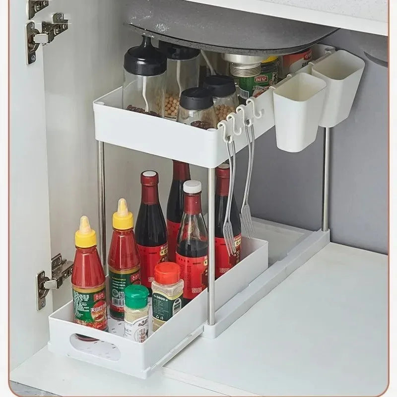 Organizador deslizante para pia com espaço extra e ganchos penduráveis em estilo sustentável é a solução prática para manter a casa organizada, especialmente sob a pia da cozinha ou do banheiro. Projetado para uso doméstico, oferece acesso rápido aos itens do dia a dia sem ocupar espaço valioso.