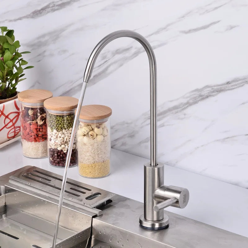 Esta Torneira de Água Potável para Purificador de Pia Residencial sem chumbo oferece água filtrada com simplicidade e segurança, ideal para cozinhas modernas. Projetada para montagem em deck com furo único, alia durabilidade, limpeza fácil e um visual discreto.