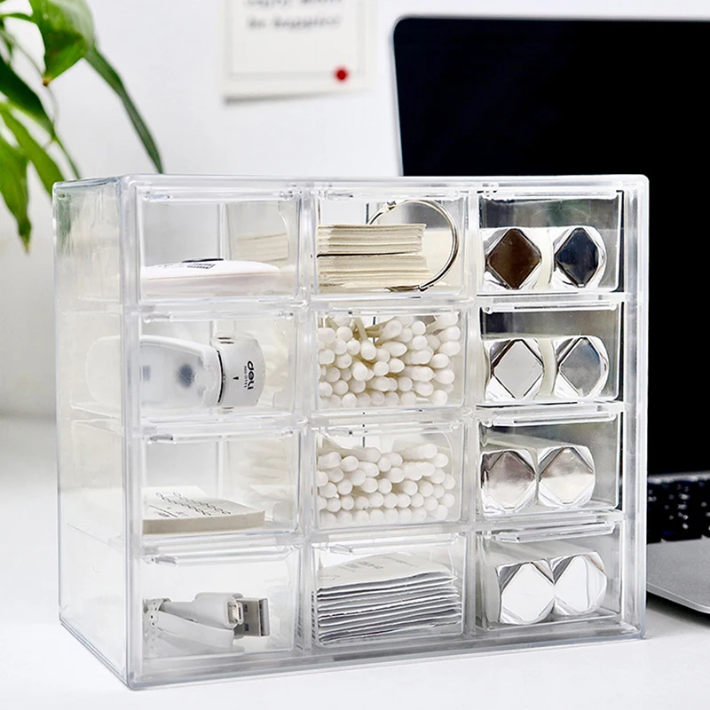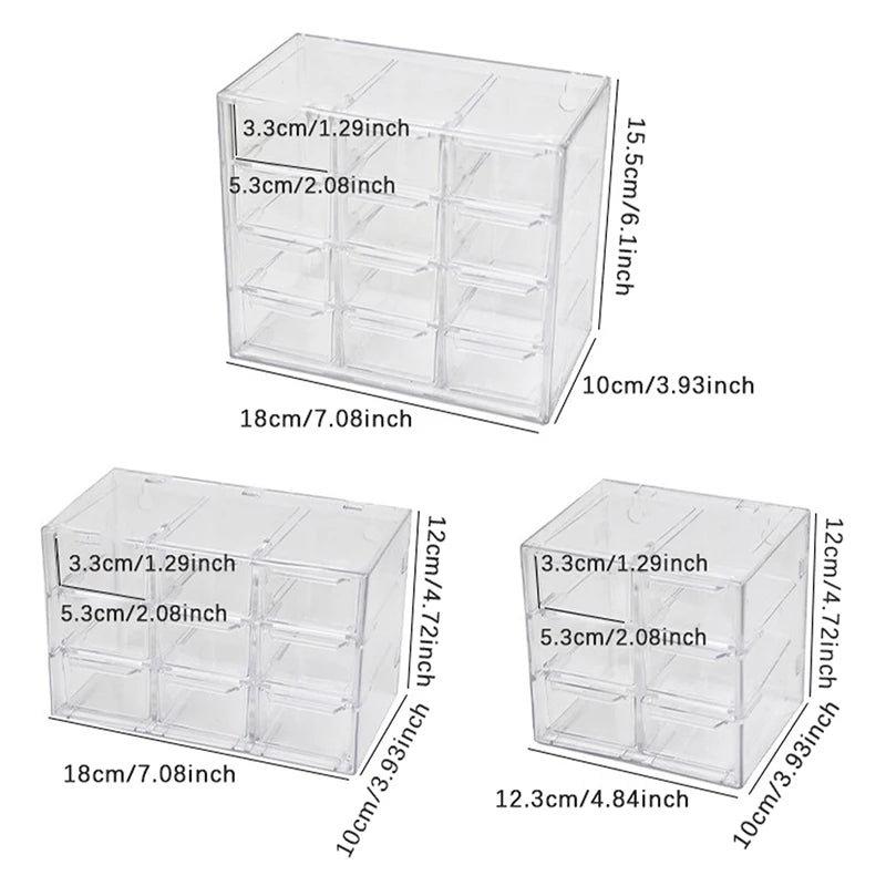 Transforma a organização do espaço com praticidade e clareza. A transparência das gavetas permite localizar joias, acessórios de cabelo ou artigos de papelaria sem abrir cada compartimento, enquanto o design empilhável maximiza o espaço disponível na mesa.