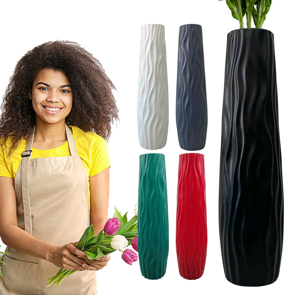 Vaso decorativo de chão texturizado com linhas elegantes, pensado para salas de estar modernas que valorizam estilo e simplicidade. Ideal para exibir água, flores reais ou arranjos secos, mantendo o ambiente sofisticado com facilidade.